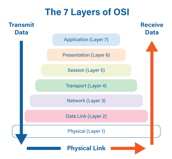 - 물리 계층 - 전기 신호를 이용해서 통신 케이블로 데이터를 전송